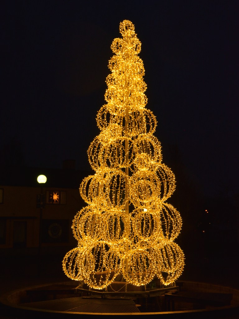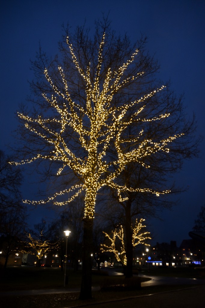 Till sist ett par bilder för julstämningens skull. Fina upplysta träd i Vilhelminaparken och en av de upplysta ”boll-granar” som pryder våra torg.