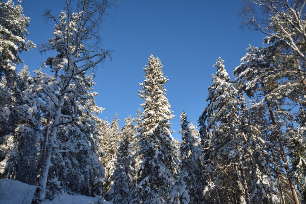 Allra finast är det när snön ligger på träd och buskar. Allting blir så magiskt och sagolikt och särskilt mot den klarblå himlen.