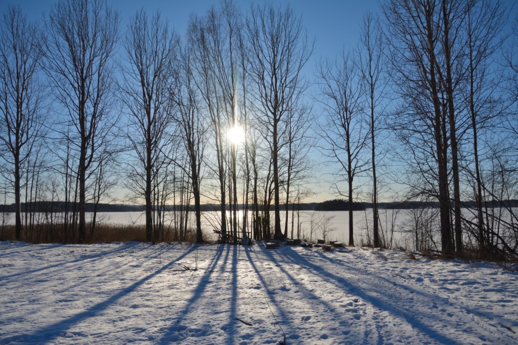 Den senaste tidens minusgrader och kyla har resulterat i att isen på sjön Stora Aspen här i Fagersta är mer än 10 cm tjock och hållbar att gå på. Min Mamma och jag har tagit flera ispromenader i vintersolen. Det har legat ett perfekt litet snötäcke som inte isolerar isen, men som gör den lite kärv och lätt att gå på utan att halka. I onsdags tog vi först den vanliga stigen från Uggelbo till Skeppmoraviken. Det var fina skoterspår att gå på när vi kom ner till ängen vid Skeppmora.