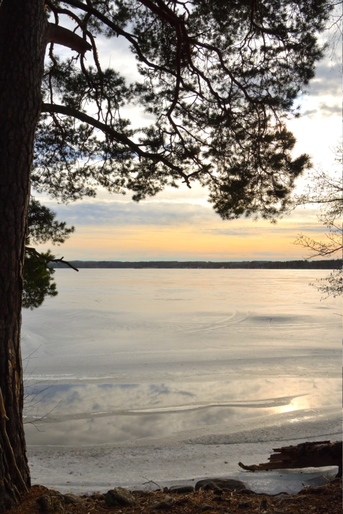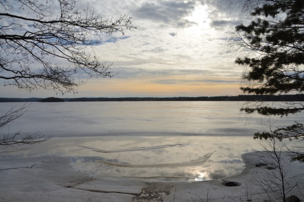 Isarna sjunger och knakar. De fryser till på nätterna, men smälter på dagarna i solens strålar. I söderlägen kan det bildas stora pölar och nästan lite öppet vatten i sjökanten.