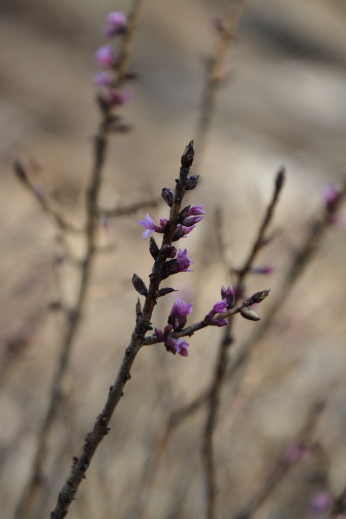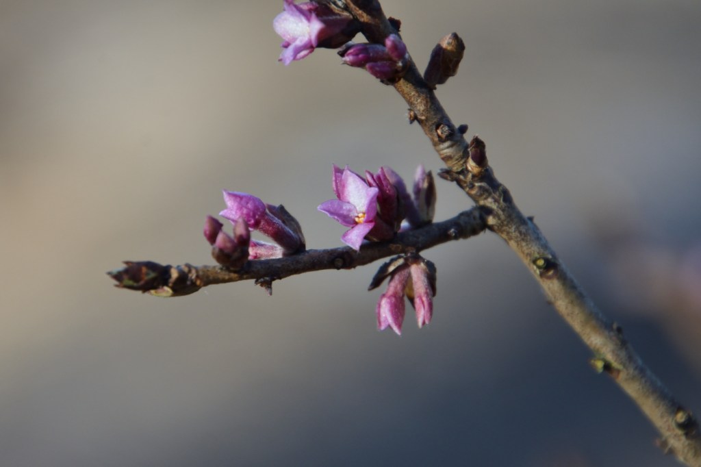 Trots att det blivit lite kallare igen, så kan man ge sig ut i naturen och titta efter vårtecken. Det är lika härligt varje år att gå ut och finna bevis på att livet sakta återvänder efter den kalla vintern. Nu har tibasten börjat att blomma. De har så vackra rosa blommor som slår ut på bar kvist.